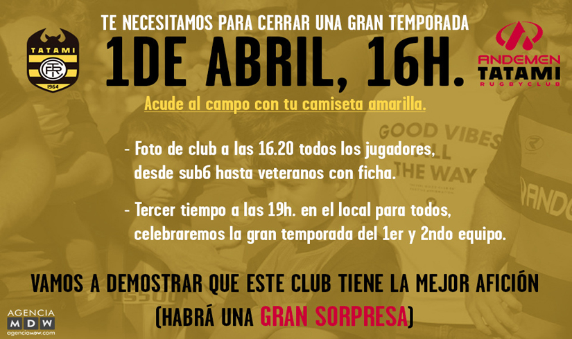 ¡VEN A VERNOS JUGAR ESTE SÁBADO CON TU CAMISETA AMARILLA Y MUESTRA TU APOYO!